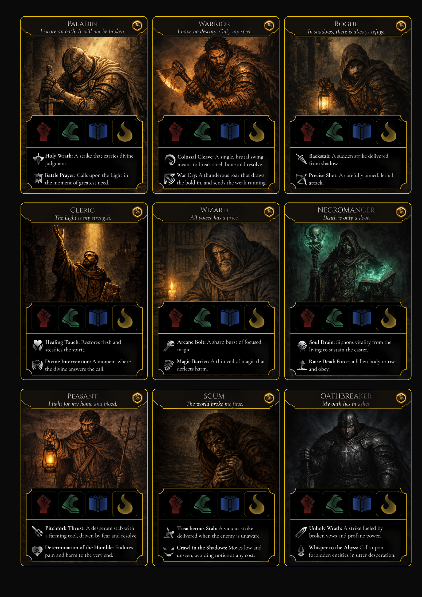 - Class Deck: 10 character cards ready to print, from the Paladin to the Necromancer.